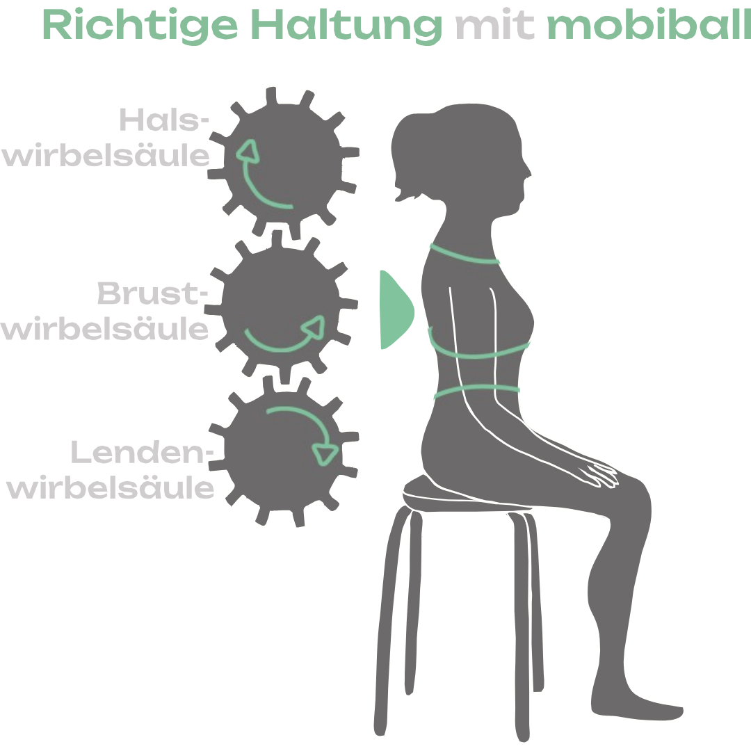 Wird die Beweglichkeit im " mittlerenZahnrad" täglich genutzt, kompensieren die Hals- und Lendenwirbelsäule nicht mehr in die falsche Richtung. Die Spannungen der Skelettmuskulatur sowie der glatten Muskulatur der inneren Organe werden reduziert. Funktionseinschränkungen werden vermieden und die Balance entsteht automatisch. Unter der Rubrik „Symptomsuche“ können Sie Ihr individuelles Symptom eingeben und herausfinden an welchen Wirbeln genau Sie den Mobiball einsetzen können.