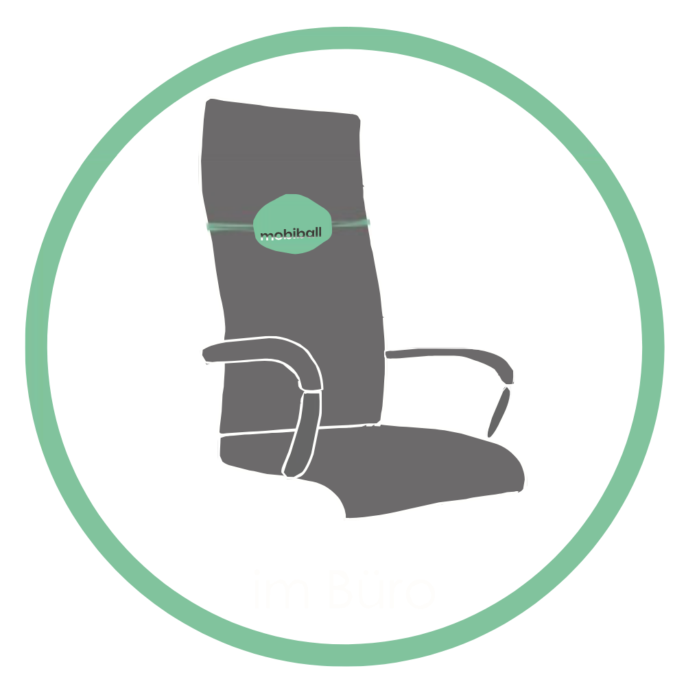 Sie binden den Mobiball an Ihrer Lehne, egal ob im Büro, im Auto, oder im Homeoffice an. Bleiben Sie mit dem Mobiball auf Höhe der Brustwirbelsäule (im Bereich der Rippen). Vermeiden Sie im Sitz die unteren Lendenwirbel oder die Nackenwirbel. Denn eingeschränkt sind meist die Brustwirbel, da die Rippen hier ansetzen. Also sind die Brustwirbel hauptsächlich zu mobilisieren.