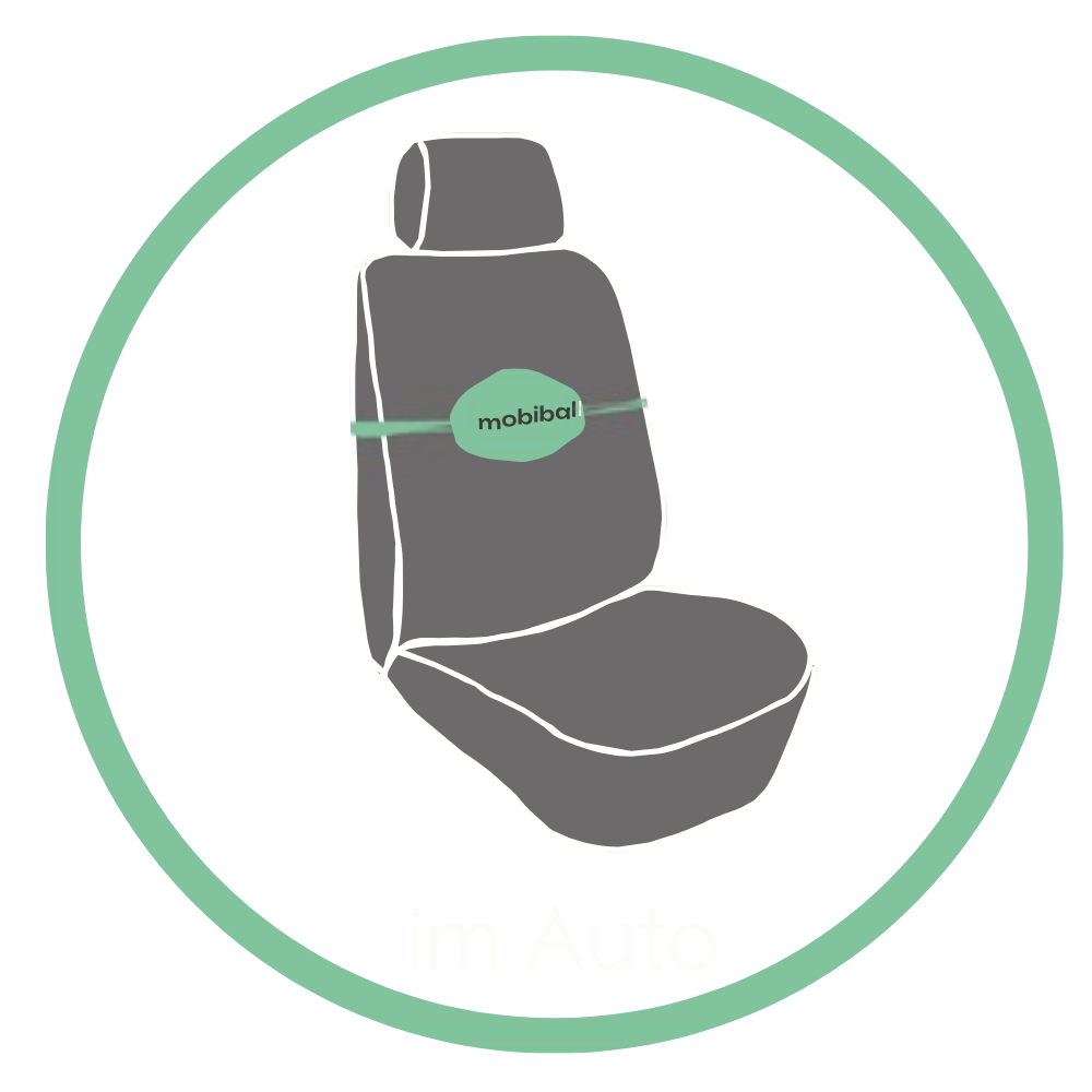 Der Mobiball kann an Sitzlehnen jeglicher Art umgebunden und mit einem Klick-Verschluss befestigt werden. Die Gurtlänge ist variabel einstellbar. Zusätzlich ist der Gurt elastisch, sodass der Mobiball von breiten Auto-Sport-Sitzen bis hin zu schmalen Esstisch-Stühlen passend eingestellt werden kann.