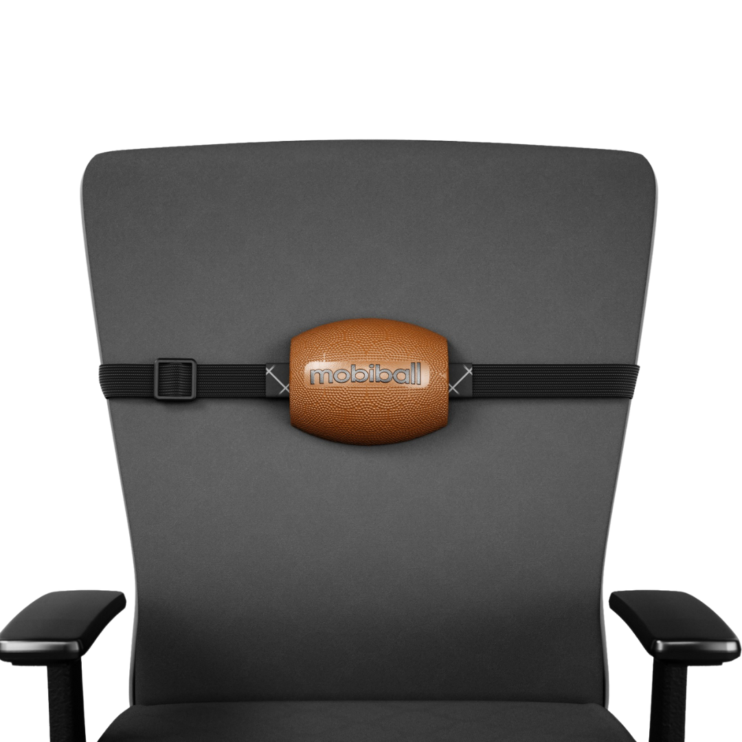Befestigen Sie den MOBIBALL mit einem Klick an der Stuhllehne, im Auto oder wo immer Sie sitzen. Das elastische und verstellbare Befestigungsband macht die Installation kinderleicht.